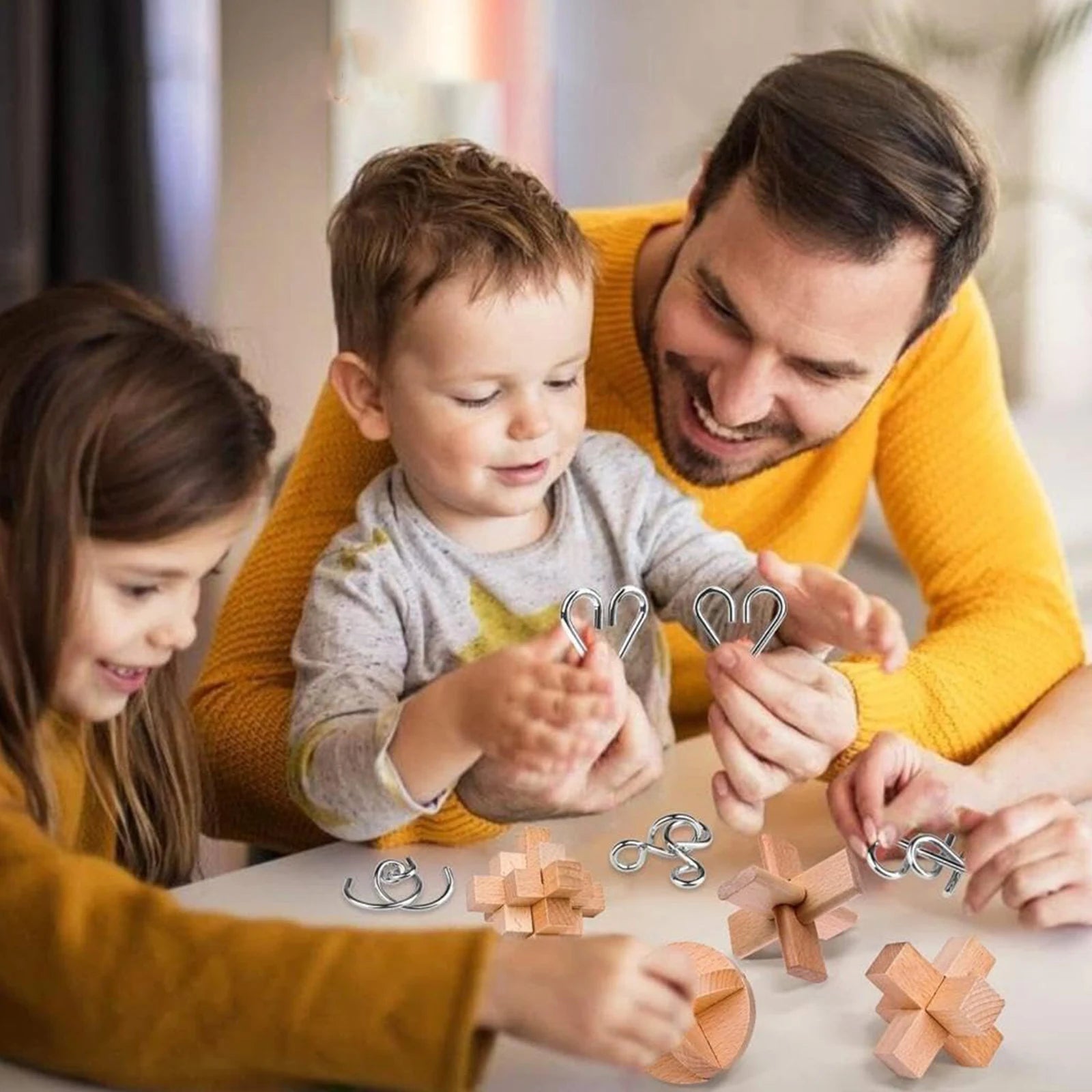Crafted from eco-friendly wood and durable metal, each puzzle is smooth, burr-free, and safe for all ages. Designed to encourage focus, logic, and problem-solving, this set turns the holiday season into a daily moment of joy and learning.
