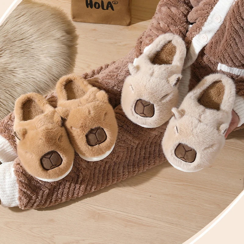 Cute Capybara Winter Slippers for Women ā Warm Plush Indoor Slides.